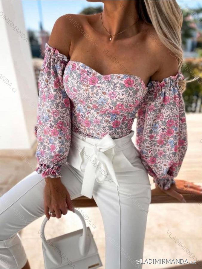 GOODS (120551) > Women's clothing (81918) > Tops, t-shirts, tunics and tank tops (13122) > Tank tops and tops (2101) > Crop tops (560) > Women's short sleeve shirt top (S / M ONE SIZE) ITALIAN FASHION IMM22U5295