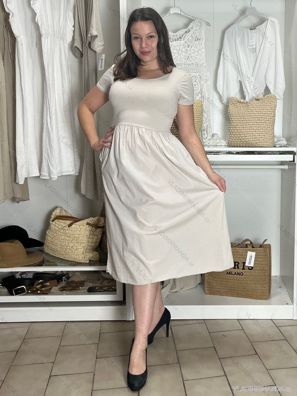 Women's short sleeve summer casual dress (S/M/L ONE SIZE) ITALIAN FASHION IMWGB25022 S / M / L Brown