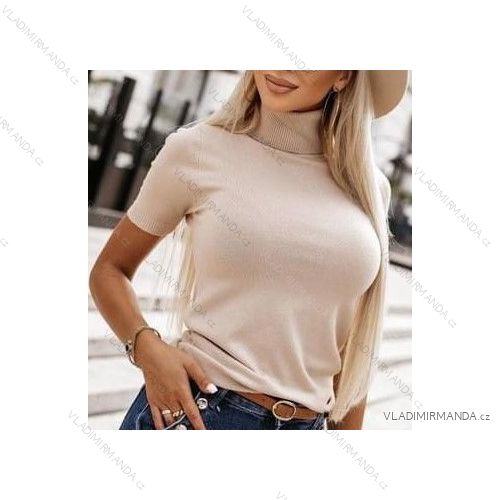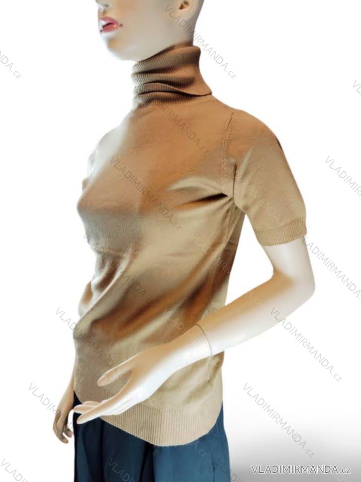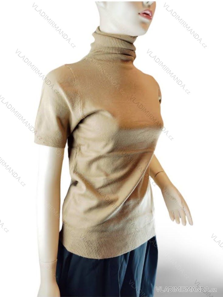 GOODS (119519) > Women's clothing (80858) > Tops, t-shirts, tunics and tank tops (12897) > Women's Short Sleeve Turtleneck Knitted T-Shirt (S/M ONE SIZE) ITALIAN FASHION IMWCJ23023 black S/M