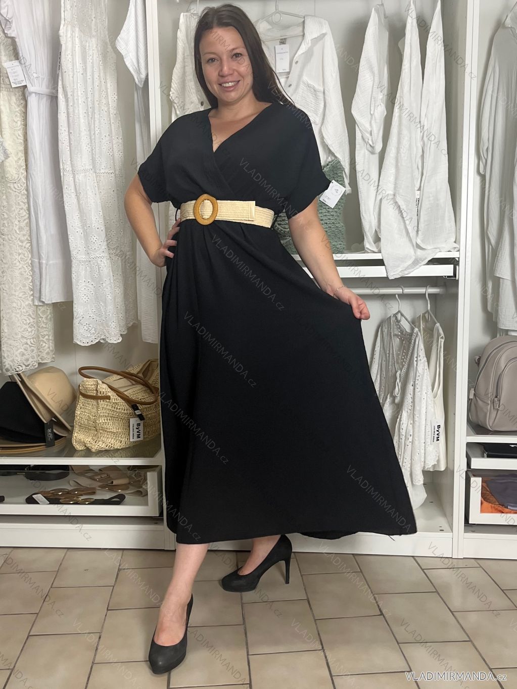 GOODS (120375) > Women's clothing (81493) > dress (30633) > Women's short-sleeved summer shirt dress with belt (42/44/46 ONE SIZE) ITALIAN FASHION IM425036 L / XL black