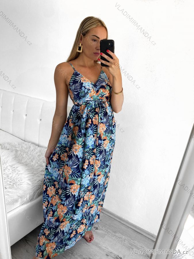 Šaty letní na ramínka dámské (S/M ONE SIZE) VISKOZA AINUOSI FRANCOUZSKÁ MÓDA FMPZM23A122-2 S/M black