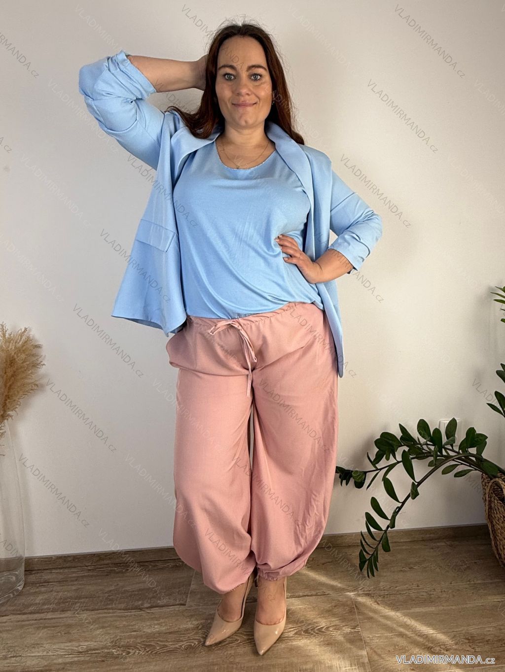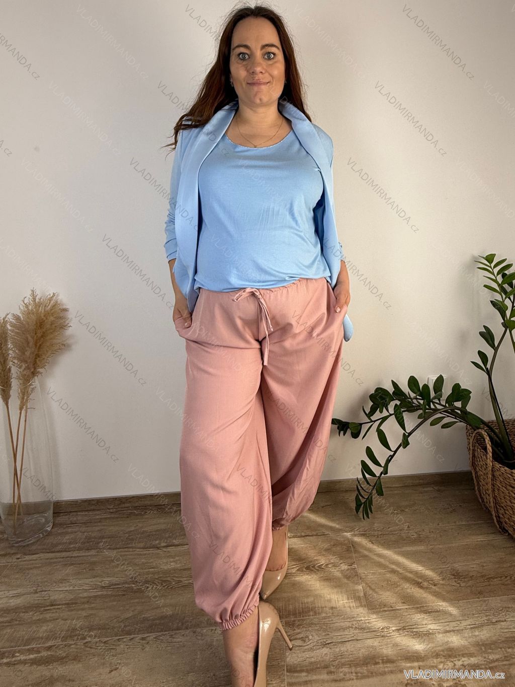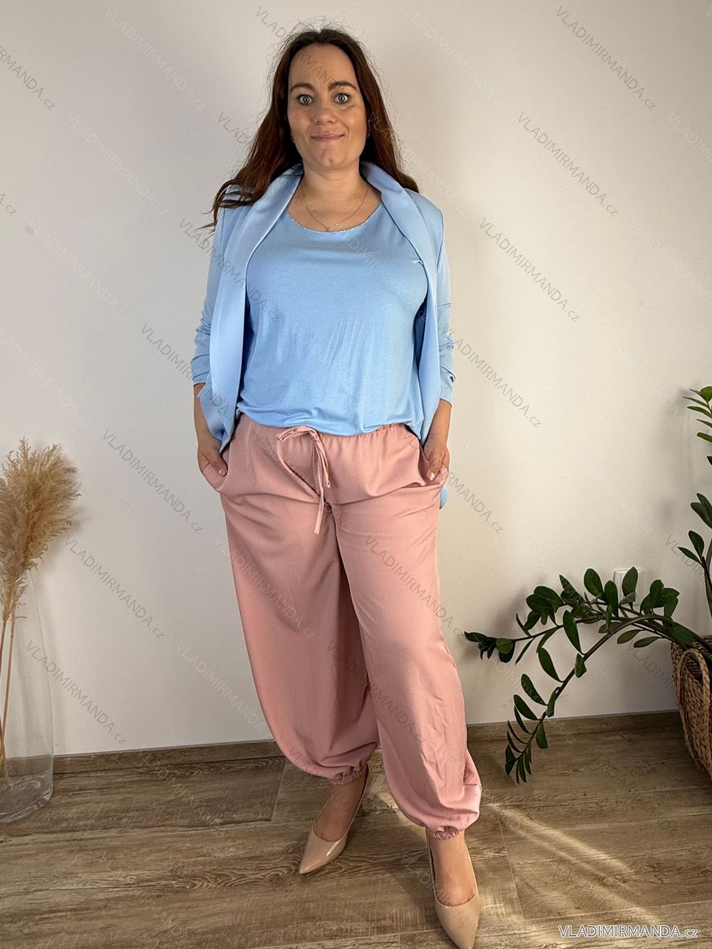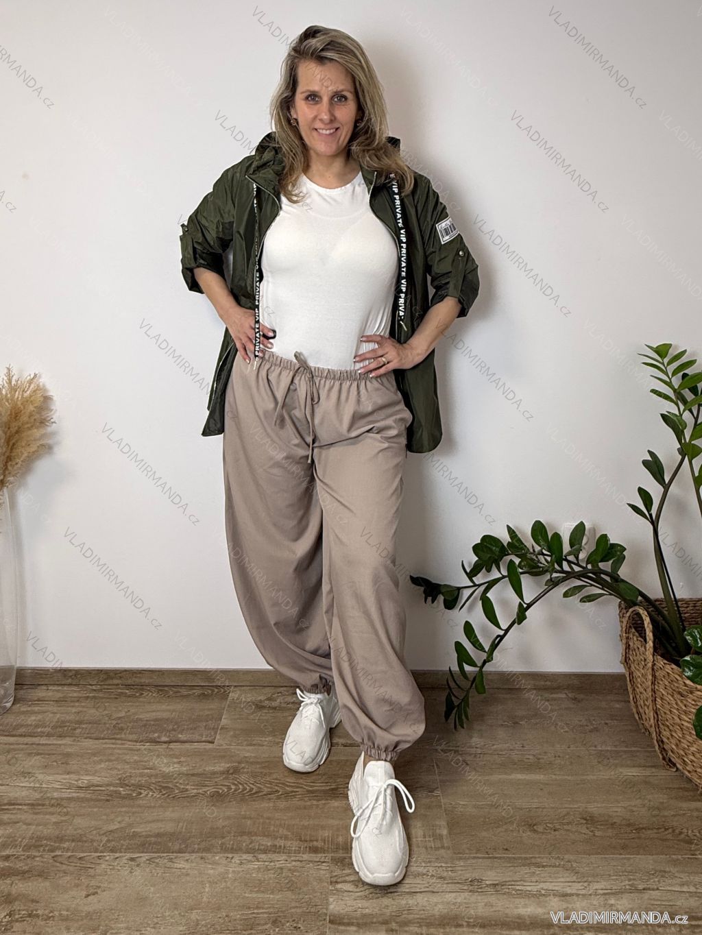 Women's summer pants oversized (46/48/50 ONE SIZE) ITALIAN FASHION IMC26076 beige