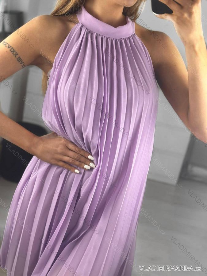 Women's Summer Pleated Chiffon Sleeveless Dress (S/M/L ONE SIZE) ITALIAN FASHION IMWY231072/DU M/L Beige