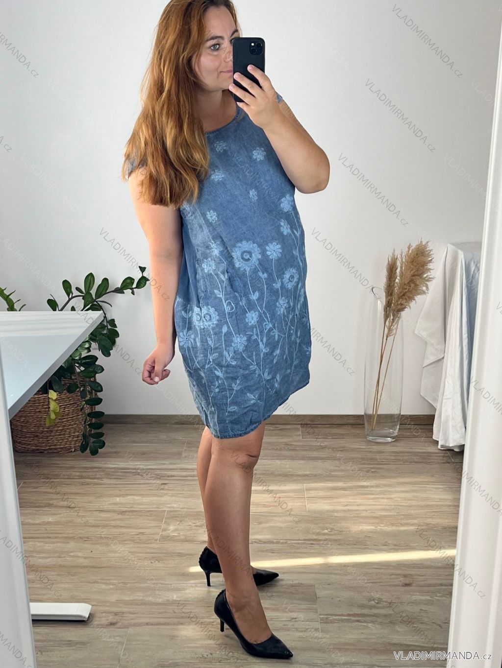 Women's summer short sleeve linen dress (M-3XL) ITALIAN FASHION IM422STELA-14/DU - Light blue - 54