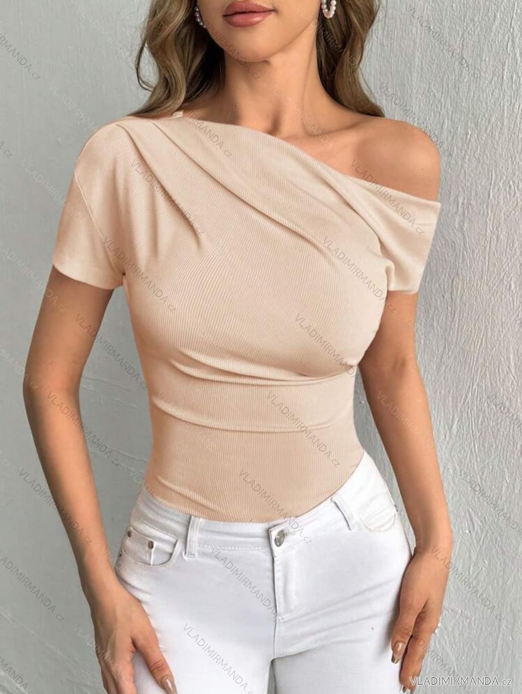 GOODS (120877) > Women's clothing (81944) > Tops, t-shirts, tunics and tank tops (12983) > T-shirts (5559) > T-shirts short sleeve (3900) > Women's summer top (UNI S / M) ITALIAN FASHION IMM20396 beige XS/S/M