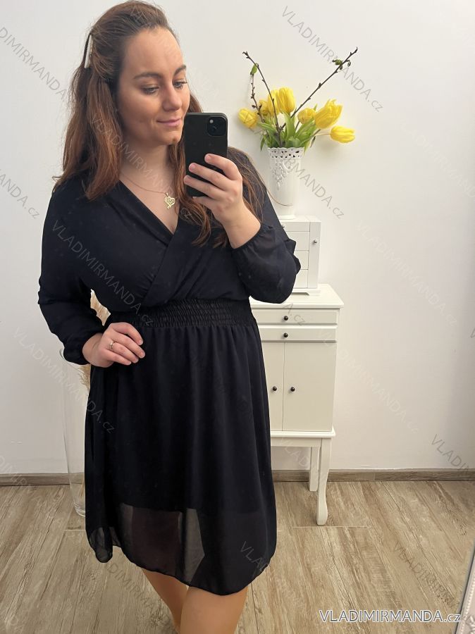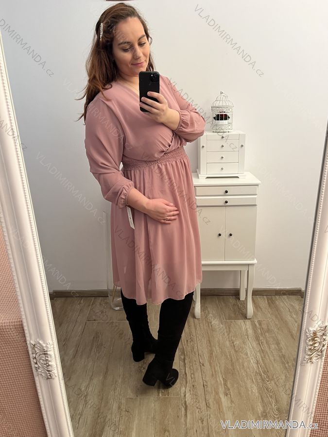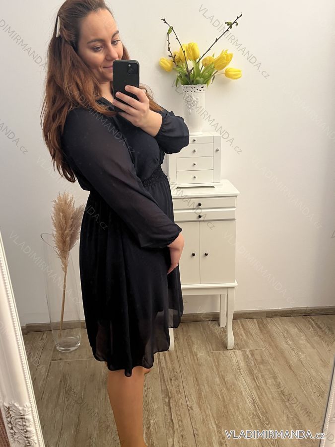 Elegant chiffon dress, frilled at the waist, with a long-sleeve petticoat for women